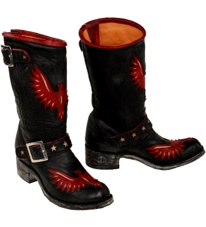 ["10\" - 11\"","Americana","Boots","Boots\/Short Shaft","Buynow:No","Classics","Color:Black\/Red","Default Category Migrated","EAGLE","Findretailer:No","HEEL:0","Height:10\"","In\/Over-Lay","Is Featured:No","Is Recurring:No","Leather:Goat","Linesheet:Yes","mto","New:No","Nobutton:No","OLD GRINGO","Patriotic","Product Type:Women","Product TypeWomen","Shaft:10\"","Shaft:10\" - 11\"","SKU:L816-4","Stockcheck:Yes","Toe:Round","ToeRound","Warranty:0","Women","Womens","Work Type"]